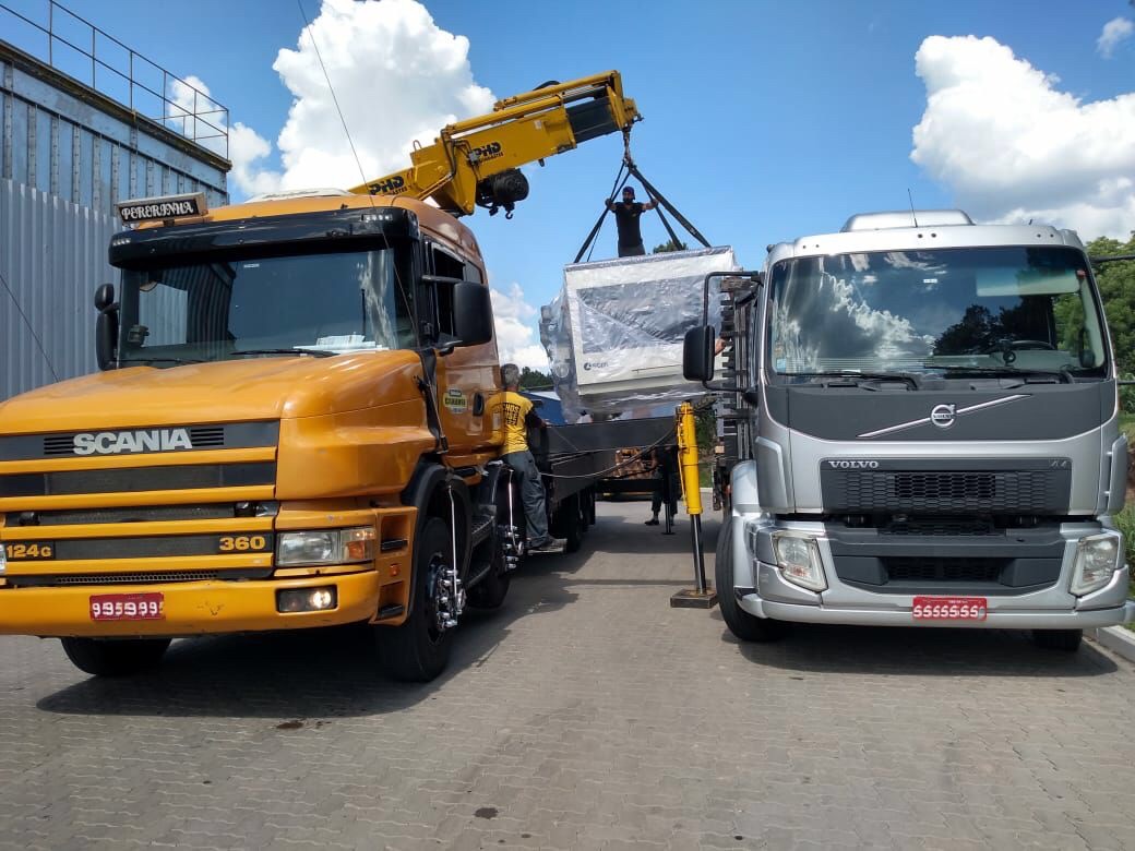 Para peças de grandes dimensões que não podem ser desmontadas, como partes de máquinas industriais, contamos com uma frota de caminhões especiais projetados para esse fim, assegurando um transporte seguro e eficiente.